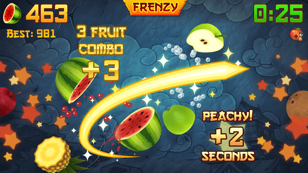 Một vũ khí có càng nhiều sao càng chắc chắn sẽ có các chức năng bổ sung. Bạn cũng có thể sử dụng tiền để mua các khả năng như trái cây phát sáng, cung cấp điểm khác hoặc loại bỏ hai quả bom mà không bị mất máu. Luôn cố gắng cắt trái cây bằng một ngón tay, giữ cho tầm nhìn rõ ràng và bom bay.